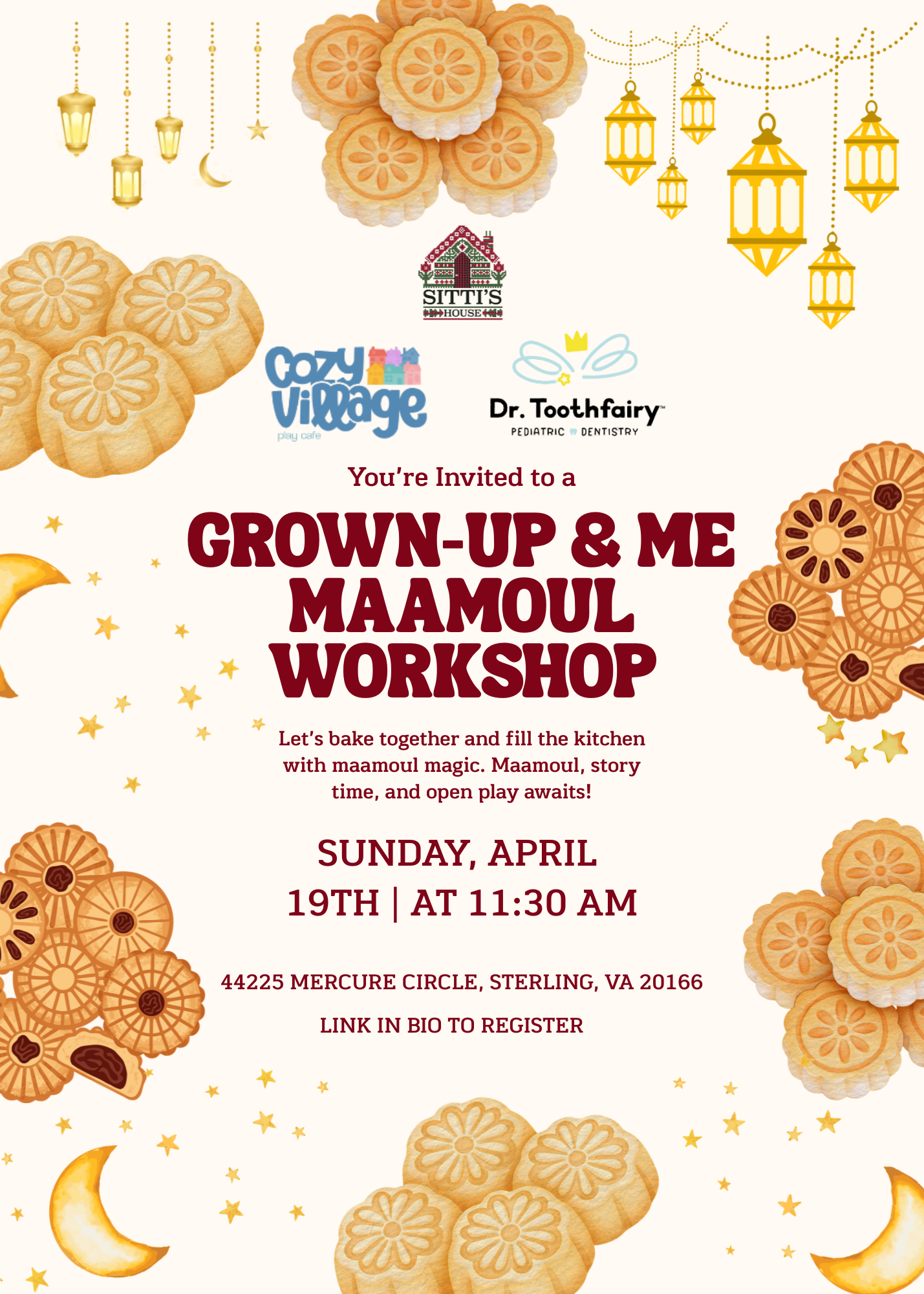 We’re so excited to host Sitti’s House at Cozy Village Play Cafe for a special Grown-Up & Me Maamoul Workshop! 🍪✨
