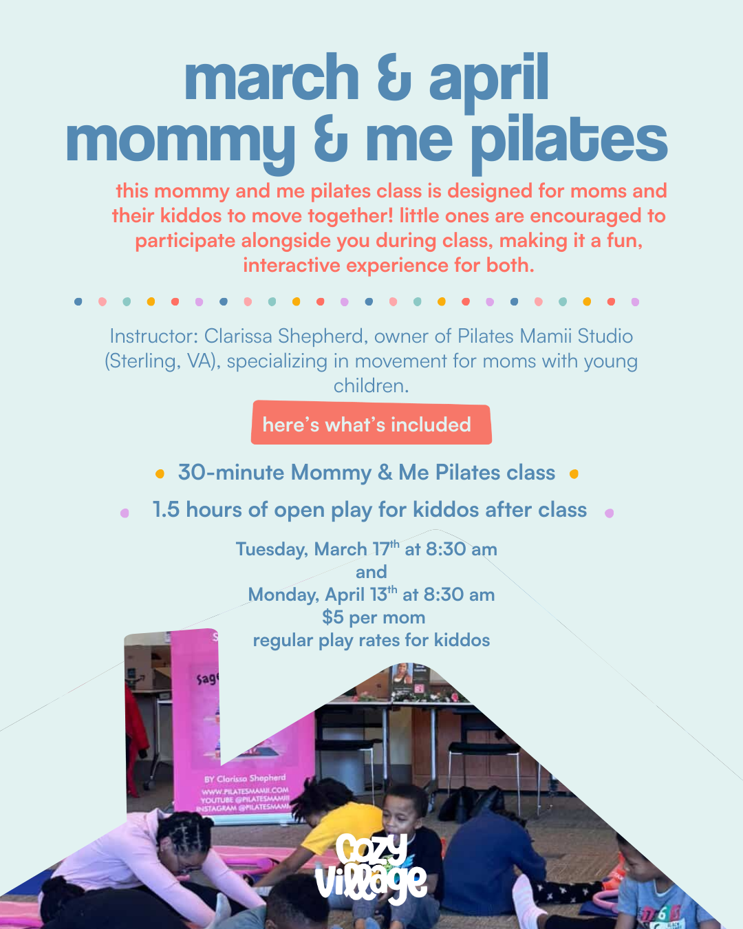 • 30-minute Mommy & Me Pilates class